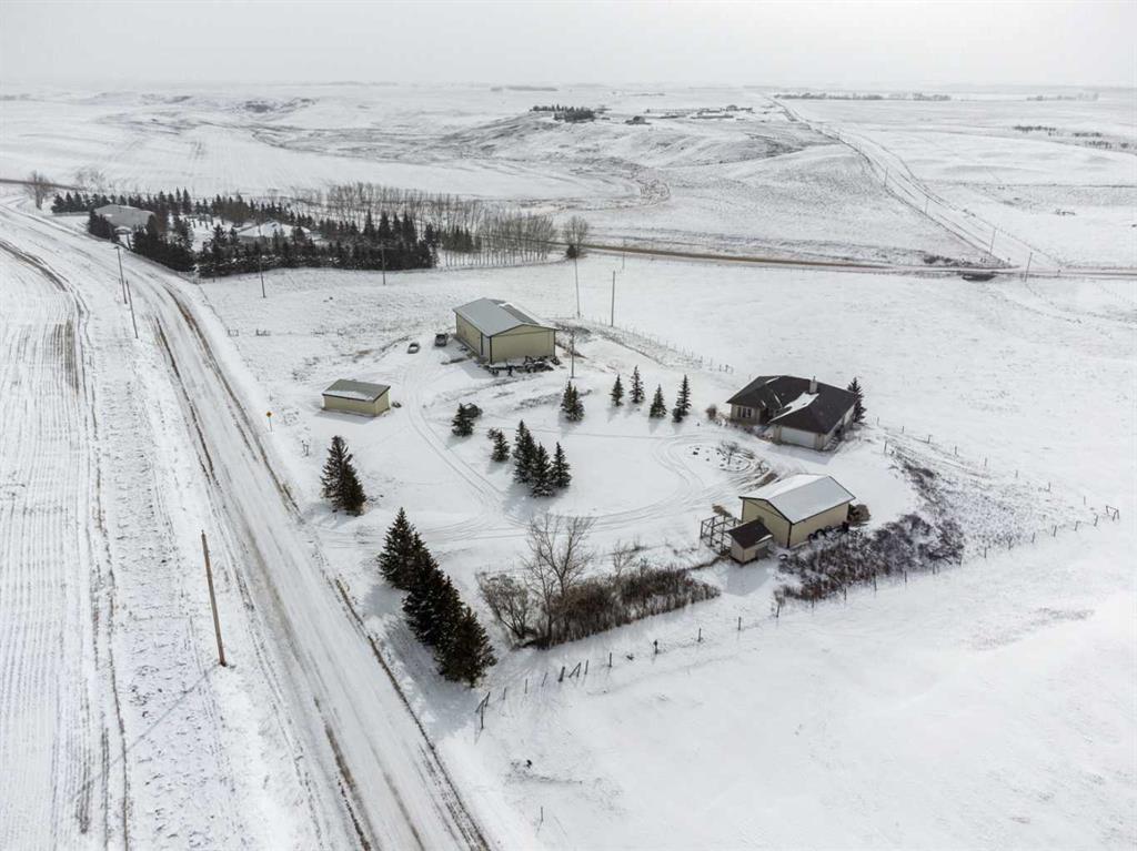 Scenic views and wildlife await you at this beautiful 13.17-acre parcel in Rural Rockyview County. This property truly has it all and must be seen to appreciate all of it. In addition to the walkout bungalow, there is a separate heated workshop/3 car garage and a 60x40 Sq Ft shop (cost: $250,000+ with radiant heat, bathroom and mezzanine) with a 2-bedroom legal suite (on separate septic)! This charming bungalow offers a serene retreat from the hustle and bustle of city life. With its picturesque surroundings and cozy interior, it's the perfect blend of tranquility and comfort. The bungalow boasts beautiful hardwood floors, a large living room with a cozy gas fireplace, formal dining area, breakfast nook, which opens to a balcony with gas line, kitchen, and convenient laundry room. There are 3 generous bedrooms including the primary, with a walk-in closet and a 5pc ensuite. There is an additional 4pc bathroom on this level. Downstairs has in floor heat throughout, a huge rec room with bar area and walk-in pantry. There is a 4th bedroom and 3pc bathroom on this level as well as an abundance of storage. From here you can access the large south facing deck and enjoy the sprawling view. The detached workshop/3 car garage has radiant heat and 240 power, with a 16ft metal door. The Shop is a 60ftx40ft metal building with a 14ft main door. It’s a 2x8 stud construction with R40 wall insulation and R60+ in the attic. There is in-floor heating, a drainage trough and a 2pc bathroom. The 732 Sq Ft Suite has no direct access to the shop. It has zoned in floor heat, 2 bedrooms, a living room and full kitchen, and a 3-pc bathroom. There are solar panels aiding power to keep the energy bills lower, and a natural gas electrical generator for backup. The glorious land features a chicken coop and run, and a flattened area that’s great for sports and can host an outdoor rink. If you love the idea of peace and quiet in a rural area, but also love the convenience of city living, this is place for you! Just 15 minutes from Airdrie, and the school bus will stop at the drive!