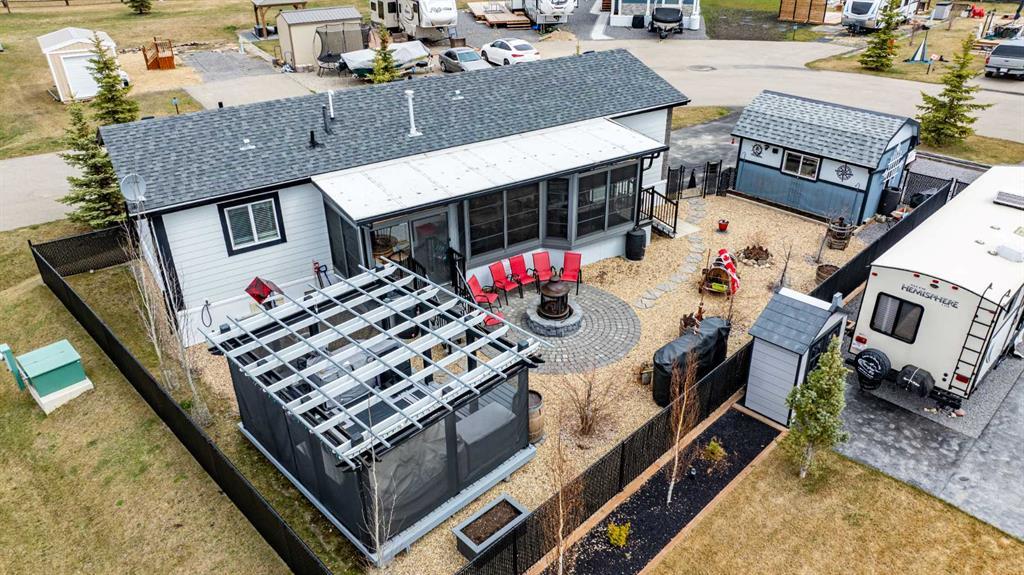 Welcome to the serene beauty of Sandy Point on beautiful Gull Lake. Ready to elevate your lakeside experience from camping to permanent bliss? Look no further than this remarkable property, offering boundless building potential amidst breathtaking surroundings. Summer retreat or 4 season place to call home. Step into the inviting - immaculate - like new - home, flooded with natural light and featuring a beautiful fully equipped front kitchen, large living room, two bedrooms and 2 bathrooms. The primary bedroom accommodates a king-size bed, it features a walk in closet and 3 piece bathroom. While the second bedroom is used as an office. An open-concept layout seamlessly integrates the kitchen, dining, and living areas, with double doors leading to the expansive deck finished with top of the line enclosure - sunroom facing south. Whether relishing a peaceful morning coffee or entertaining guests, this home provides the space for it creating a sanctuary for every season. Life at the Lake is a harmonious blend of relaxation and recreation. As part of a gated community, residents enjoy a plethora of amenities, from boating and fishing, future golfing and swimming. With Phase 3 convenience, essential facilities including a bathroom, laundry facilities, playground, community Gazebo with firepit and more, are within easy reach. Conveniently located under 30 minutes from Red Deer, 15 min to Lacombe and Sylvan lake and 5 min to Bentley, this immaculate retreat beckons those seeking respite from city life or a rejuvenating escape after a long workday. The spacious west -facing deck offers the perfect setting for alfresco dining or simply savoring the views of a beautifully cared for and manicured yard! Everything here has its purpose and was carefully placed. Finished with upgraded Hardy Board on the outside. Wait until you see the outdoor kitchen/gazebo with power and fully equipped with heat and 30 amp power shed. This place is fully fenced to keep your children and pets safe! driveway is paved and there is gravel pad for your boat! This bare land condo ensures ownership of the lot, with a nominal fee covering water, sewer, garbage, and future clubhouse access. Pet-friendly this turnkey oasis awaits your arrival. Embrace the warmth of community and the joys of summer living in this slice of paradise.