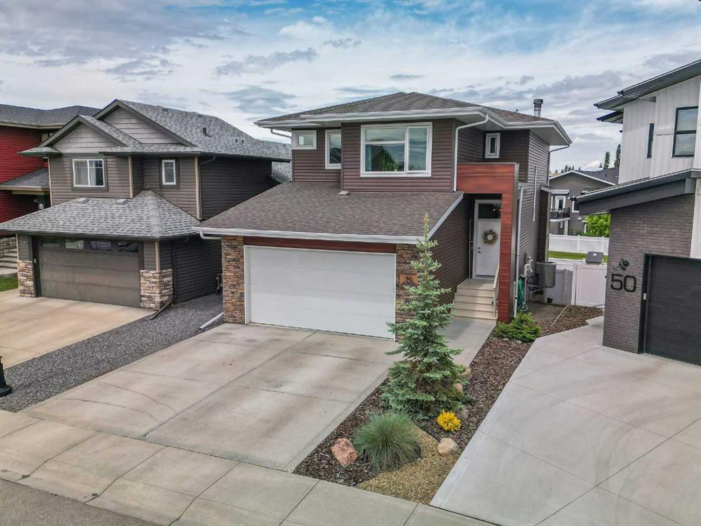 Welcome to 46 Lowden Close, this fully finished two storey home is found on a quiet close in the sought after subdivision of Laredo in South Red Deer, Alberta. It backs onto a walking path and green space that turns into a park. Walk into the spacious entrance and you are greeted with a living room that is open to the upper level with a feature wall that offers a wood burning fireplace (with a gas igniter) which is finished off in stone. The kitchen plan is gorgeous and offers so much attention to detail from the floating shelves to the beautiful beam and the extra large island that is finished with a beautiful granite countertop. There are an abundance of large windows throughout the home that let the natural light soar through, making it a bright and sunny home. The kitchen is a great space to entertain your friends or spend time with the family as it is open to the dining area and family room. Off the dining room, walk outside onto the deck that is completed with maintenance free decking and a gas line. The large mud room is a great space and finished off so nicely with so much attention to detail and fine wood finishings, offering plenty of storage, the laundry and a sink. This leads you out to a double garage which has 220 wiring, radiant heat and is roughed in for underfloor heating, also the storage area (as shown on the floor plan) has since been removed. The wide stairs in this home are a delight and the open railing on the staircase lets you enjoy the visual of the beautiful features. The primary suite offers a stunning feature wall, a large walk-in closet and a luxurious ensuite with a large walk-in shower with a seat, extra large sink and beautiful tiled floor. The upper level offers two more good sized bedrooms and a full bathroom. The walkout basement is completely developed and offers a fourth bedroom, a large recreation/family room with a bar area (currently being used as a salon, but will be converted back into a family room by sellers), a full bathroom and lots of storage. The backyard is maintenance free and has a patio and several planter boxes, complete with a vinyl fence. There is so much attention to detail and many beautiful features throughout the home. Some updates and upgrades include; central air conditioning, upgraded wide plank laminate throughout the main floor and tile in bathrooms, scraped hardwood flooring in the lower level, feature wall with stone in lower level, granite countertops in all bathrooms and upgraded blinds. There is a cabinet in the bar area that slides out to allow for assess to the storage area - underneath the stairs, it's easy to assess (there's a picture of this area). This home is a pleasure to show.