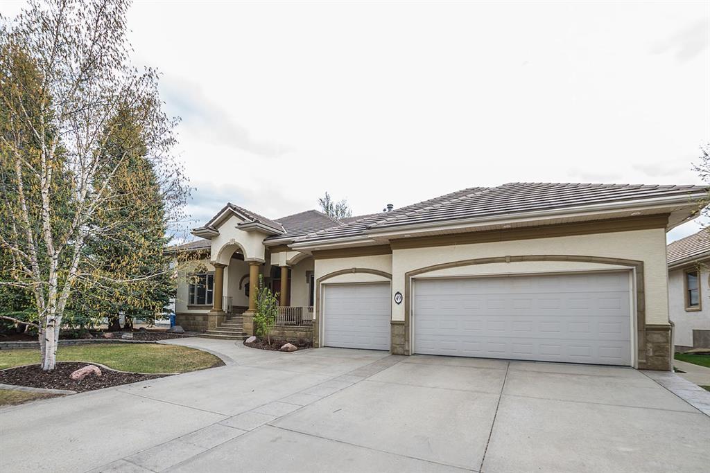 Welcome to this custom built updated walk out bungalow and backing onto Anders on the lake. The grand entry welcomes you with stone steps, a double-door entry, and a wall featuring a water fountain. Inside, you will find a grand tiled entryway with a stone niche, an open-concept floor plan, and high ceilings reaching 12 feet—birch hardwood flooring throughout the main floor traffic areas. In-floor heating throughout the entire home, including the garage. Central A/C keeps the temperature comfortable in the heat of the summer. The formal dining room features elegant pillared columns and abundant natural light. The master suite is a private space separate from the rest of the main floor and the Juliet balcony provides a gorgeous view of the extensive landscaping, the lake, and walking paths. The walk-in closet is the size of a small bedroom and is masterfully organized. The top rods are retractable, perfect for changing out your seasonal wardrobe. The 5 piece ensuite is like your personal spa…corner jetted tub, glass shower and dual sinks. Enjoy the tranquil 400 sqft south-facing deck that soaks up the sun all year round. The kitchen showcases cherrywood cabinetry and granite counters (including a raised eating bar, a separate island, and pantry-style cabinets). Adjacent to the kitchen is the main floor laundry room/butler's pantry and second fridge. The living features a floor-to-ceiling cherrywood built-in bookcase and TV cabinet to enhance the living room. The downstairs is fully developed with a wet bar, wine cellar, family room/games room, gas fireplace, office with built-in desk and cabinets that include a Murphy bed. There is also 2 generous sized bedrooms, and a soundproof theatre room. The updates include a new furnace, washer, dryer, and more!. The house has been completely repainted, new carpeting and lighting have been installed. The triple attached garage offers ample storage space and an additional storage room outside, ideal for storing extra tires. The lovely backyard is designed for low maintenance, showcasing various perennials, vinyl fencing, rock paths, and a fire pit. Unlock the gate and access the scenic walking paths surrounding the lake. This home is in the perfect location and is move in ready!
