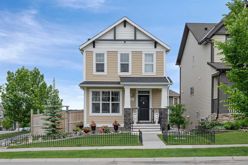 A luxuriously upgraded home perched atop an over-sized corner lot; located kitty-corner from Heritage Hills' largest park (i.e. basketball court, playground, picnic tables). This fully-finished (i.e. nearly 2,500 sq ft of developed living space) 4 bed/4 bath upscale air-conditioned home offers front porch to large/bright/airy entry, main floor den, decadent gourmet kitchen with upgraded stainless steel appliances/island/breakfast bar/quartz counters/full height cabinetry/walk-in pantry, spacious living room with feature gas fireplace, dining room, 2-piece powder room and large mud room to an 8' X 20' elevated deck offering views of the majestic Rocky Mountains and over-looking a beautifully landscaped/fully fenced/zero-maintenance/dog-friendly back yard; complete with a 9' X 13' lower stone patio perfect for the fire pit. Upper level houses a centrally-located bonus room with tasteful tray ceiling, large master bedroom with gorgeous 10'+ vaulted ceiling/large walk-in closet/full ensuite (complete with dream dual-head, walk-in tiled shower), 2 additional generously-scaled bedrooms and full 4-piece main bath. Lower level was professionally developed by Builder (i.e. all permits in place) to include living room with feature gas fireplace, substantial 4th bedroom with walk-in closet, full 4-piece bathroom, laundry room and loads of storage. Long-list of upgrades includes: 9' ceilings on main and lower level, premium millwork, additional transom windows, Hardie Board siding, upgraded laminate flooring and lighting/plumbing fixtures throughout. 20' X 20' double detached garage off paved back lane rounds this gorgeous abode out. 15 minutes from Ghost Lake (i.e. boating, floating, fishing, water sports), 50 minutes to Canmore and just over an hour to Banff - your next adventure awaits! Available for quick possession.