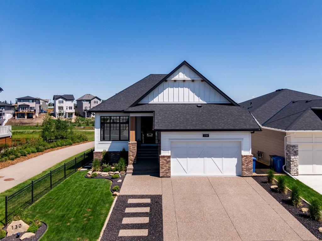 Original owners present this gorgeous FULLY FINISHED WALKOUT BUNGALOW backing onto a POND & GREEN SPACE! Every aspect of this home was designed with longevity & truly is TOP-OF-THE-LINE! Greeted with a FARMHOUSE INSPIRED DESIGN & charming front covered veranda overlooking your tranquility & custom landscape. LOADS OF SUNLIGHT, soaring ceilings with ample windows this home exudes the term BRIGHT! Custom built-ins, high end finishing, upgraded floors throughout, 4 beds + HOME OFFICE + HOME GYM + 4.5 bathrooms with a modern farmhouse flare setting this home apart from the rest! Chef’s kitchen is host to custom cabinetry, upgraded appliances (JAW DROPPING), ample storage/counter space, custom hood fan, A-ONE-OF-A-KIND BUTLER’S PANTRY, under cabinet lighting & trendy fixtures! Spreading to your dining area (with access to your spacious upper deck enhancing those BREATHTAKING WATER VIEWS). Your living area is host to a cozy floor-to-ceiling STONE FIREPLACE with a built-in entertainment unit! Primary retreat lives up to the reputation of your own OASIS with a full 5 Pc SPA-LIKE en suite, large walk-in-closet, separate make-up area & plenty of room for a full-sized bedroom set. Another spacious bedroom upstairs, MAIN LEVEL LAUNDRY ROOM & steps away from a full 4pc bathroom. OVERSIZED DOUBLE ATTACHED HEATED GARAGE with tons of room for your kids to kick off their shoes and stack their backpacks in a custom boot room :) Some additional upgrades worth noting: A/C, Storage Shed, 8’ interior doors, quartz counters, 10' ceilings on the main & 9’ ceilings on the walkout level, Exposed Aggregate driveway, Exterior LED soffit lighting, Custom Blinds Pkg, Upgraded flooring & so much more! WALKOUT BASEMENT boasts ample windows and you'll feel like you're on the main level. Huge REC SPACE for the growing family, WET BAR, another convenient bathroom and a flex/play/games room. HOME GYM, 3rd & 4th bedrooms (Huge) and both with their own en-suite bathrooms the kids or guests will love it! This EXECUTIVE HOME shows like a SHOWHOME……and the list of upgrades just keeps going with this beautiful property. Walking distance to schools, parks, community garden, basketball courts, it’s such a great spot to call home! Possession negotiable and this McKee Built Home truly is TURN KEY! Short commute into Airdrie or Calgary with all the amenities just minutes away. LIVING AT IT’S FINEST…. Come check out these views and enjoy a QUIET & PEACEFUL setting in nature’s tranquility!