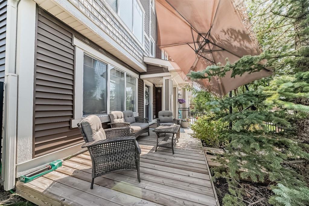 TRIPLE CAR GARAGE * NO CONDO FEES * END UNIT * PRIVATE DECK * 3 BEDROOMS * This home is amazing, loaded with upgrades and ready for a new family to call it HOME. With a wonderful little garden welcoming you as you walk up the pathway, you'll be pleasantly surprised by the private and quaint sitting area at the front entry. The mature trees and spacious side yard make this your own little oasis to enjoy the evening sunsets. The entry level of the home features a rare triple car garage (one side tandem) which allows you have some flex space for extra storage, a workshop, a games area or extra parking. The main level of the home features a large kitchen with granite counters, stainless steel appliances, gas stove, shaker style cabinetry, pot drawers, pantry and central island. There's a patio door leading to the east facing balcony with a gas line for barbecuing and boasting views of the green space beyond. The living and dining area are extra spacious and inviting, allowing you to easily entertain guests and host family gatherings. The upper level features a primary suite with walk in closet, separate ensuite with dual sinks, plus a nice view of the mountains. There's two more spare rooms to use a bedrooms or office space. The convenient upper level laundry room is furnished with upgraded washer and stream dryer, and it means no more hauling hampers up and down stairs! The home has custom blinds and high-end blackout curtains to keep it cool in the summer months. Meticulously cared for and freshly painted, this home feels like brand new!