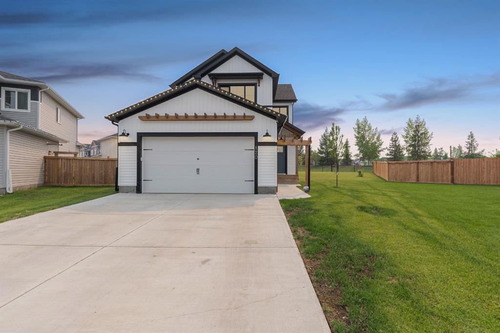 Welcome to 120 Walnut Place: The epitome of modern farmhouse aesthetic, this beautiful turnkey home built by Qualico Homes sits on an incredible 12,753 sq/ft lot. With wide side access to the yard and backing onto beautifully maintained green space, this property offers access to walking trails and parks throughout the neighbourhood. This home features stunning exterior finishes including white and black siding, wood accents, and modern farmhouse lighting. The paved driveway and heated attached garage provide parking for four vehicles while the fully landscaped backyard hosts a large deck with a gazebo and recently planted trees along the back fence and could accommodate storage and parking for all your recreational toys and vehicles. The possibilities in this yard are endless. Inside, the elevated finishes continue with luxury vinyl plank floors and neutral white walls and baseboards, offering easy and endless styling options. The living room boasts a feature wall for added character, and the open-concept living space seamlessly connects each space. The kitchen features two-toned cabinets that reach the ceiling, a walk-through pantry leading to the garage entry and mudroom, and beautiful quartz countertops and a tile backsplash. Black pendant lights over the island match the chandelier in the kitchen, adding a modern element to the design. Completing the main level is a two-piece bathroom and a large coat closet. Upstairs, the light and airy ambiance continues with neutral carpet covering the floors and oversized windows bringing in plenty of natural light. The primary bedroom includes an expansive walk-in closet and a five-piece bathroom with a long vanity featuring two sinks and high-end finishes that match the kitchen. The other two bedrooms are generous in size, with a four-piece bathroom nearby. For added convenience, the laundry is also located upstairs. The remainder of the ten-year home warranty will be transferred to the new owner, ensuring peace of mind with this beautiful 2021-built home. Schedule a private tour today.