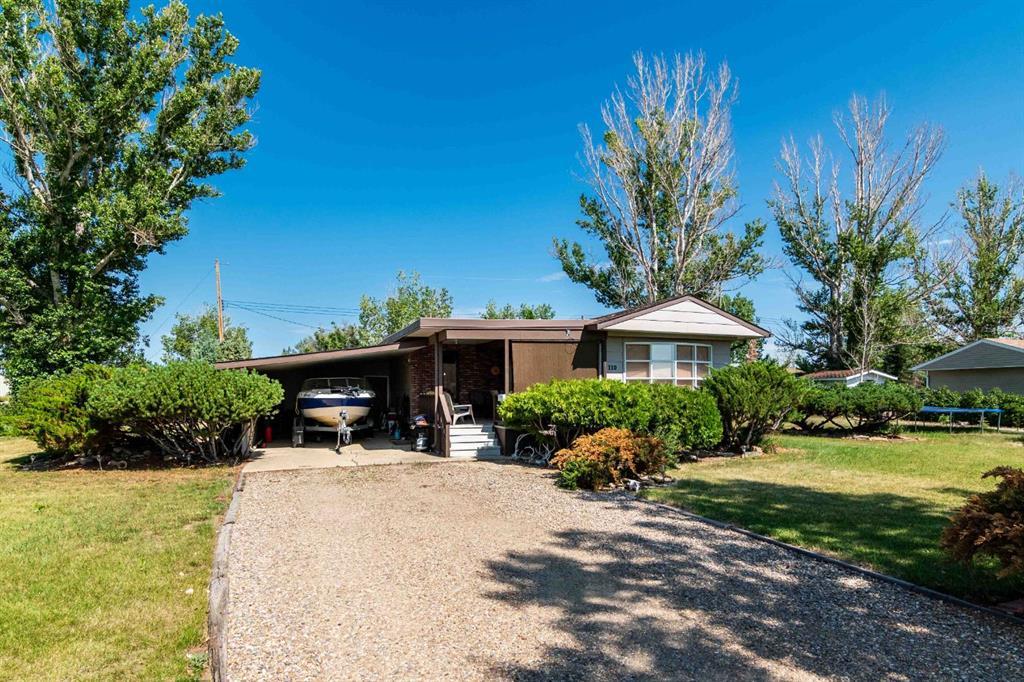Nestled in the quiet community of Seven Persons, this property offers a picturesque setting on six and a half spacious lots. A true gem, the landscaped yard features mature gardens, towering trees, and convenient RV parking, making it a haven for those seeking space and tranquility. The mobile home spans over 1400 sqft, providing ample space for comfortable living. Welcoming you inside is a nicely sized entryway that leads into a bright living room, adorned with large windows that flood the space with natural light and offer glimpses of the surrounding prairie. The open concept kitchen and dining area boasts stainless steel appliances, plentiful cupboards, generous counter space, and a comfortable setting for family meals. The residence includes five bedrooms and two full bathrooms. Step outside onto the covered deck, a peaceful retreat ideal for relaxation and enjoying the quiet ambiance of small-town living. A covered patio at the rear of the home provides an excellent spot for outdoor cooking and entertaining, with easy access to the detached single garage. Additional parking needs are met with a large carport, ensuring ample space for vehicles and storage. With its oversized lot, the property offers endless possibilities for expansion, whether it's adding another garage, creating a workshop, or simply enhancing the existing landscape. Seven Persons is renowned for its friendly community atmosphere and peaceful surroundings, offering a retreat from the hustle and bustle of city life while still providing convenient access to essential amenities. Don’t miss this chance to acquire a generous and picturesque property at an unbeatable value, and discover the beauty of small-town living!