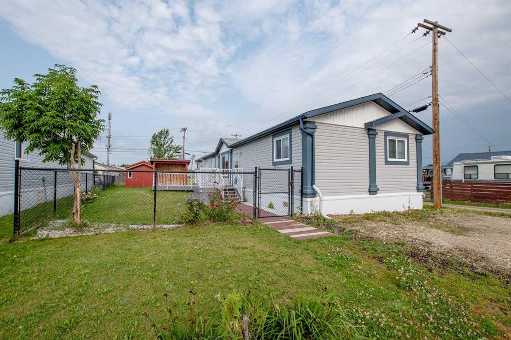 Immediate possession open concept 1520 sqft home on its own fenced lot in Wembley steps from services, playgrounds and school. Home has new flooring and paint. Offers AC, 4 bedrooms, 2 full baths, primary bedroom being on one end boasting an ensuite with dual sink vanity, oval jetted tub and walk-in closet. This kitchen is amazing with its 8 ft island full of drawers and cabinet space, a walk-in pantry, an L shaped peninsula island and still leaves loads of room for a family size dining table. Never worry about hot water again as you'll enjoy hot water on demand. Outside you'll enjoy new 16X16 deck with BBQ shelter complete with gas hookup. Double parking in front plus home sides to easement for parking access to rear yard as well. Home also comes with 2 sheds.